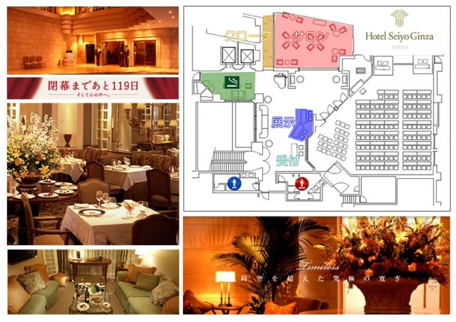 今回の会場は2013年5月末に閉館が決定しているホテル西洋銀座にて。ラグジュアリーなバンケットルーム「サロン ラ ロンド」全てを貸し切り、講演会場・ホワイエ・サロンの3つのスペースをフル活用した会場構成としました。