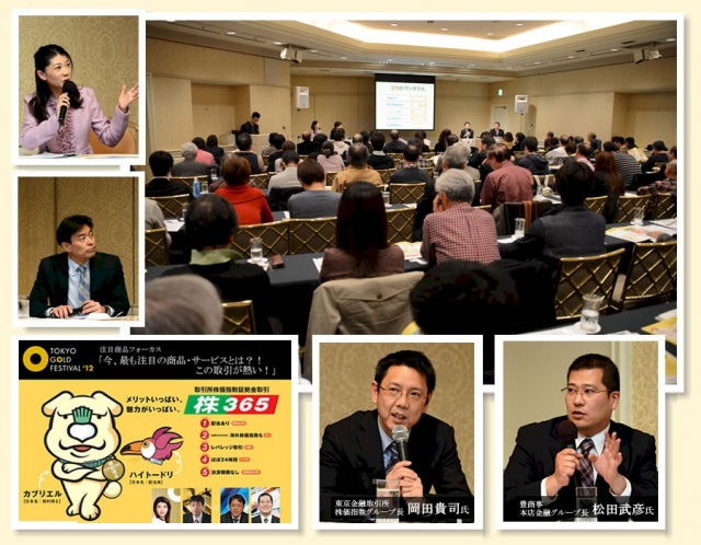 ゴールドフェスタ運営事務局は、2013年2月2日(土)に東京・銀座 ホテル西洋銀座「サロン ラ ロンド」にて、TOKYO GOLD FESTIVAL2012 より深く学びたい方のためのスピンオフセミナー Vol.1『金×株×為替 : スペシャリスト対談 in 東京』を開催。(後援:東京金融取引所、東京工業品取引所、協賛:豊商事)