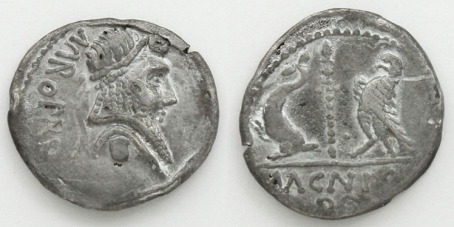 このスタイルは、ローマ征服以前のセレウコス朝シリアで発行されていたコインを踏襲したものであり、セレウコス朝時代にも大鷲のコインが発行されていました。ゼウス神の大鷲はセレウコス朝の象徴だったと考えられますが、征服後に現地民の文化と社会に適応させたローマはそのまま継承しているのです。