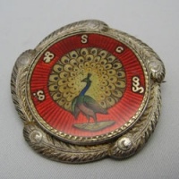ビルマの1チャット銀貨で造られたエナメルブローチ