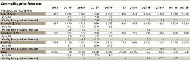 ゴールドは2014年は2013年の平均価格より安くなるという見方は変わらず。またゴールドの底値は2014年後半になると考える。その後の価格回復はゆっくりと目立たない動きとなろう。ゴールドの需要は、ファンドなどの投資家需要よりも、実需の現物需要に左右されると思われるからです。実需の現物需要、特にアジアの需要は価格に敏感であり、ゴールドが1200ドルの時は強かったが、価格が大きく急に上がることがあれば需要はなくなり、これがゴールドの大きな戻しを妨げる要因になると思われる。