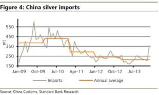 我々のファンダメンタルの見方は変わっていません。シルバーの需給のファンダメンタルは弱く、在庫は豊富です。中国(2009年から大きく伸びた需要国です。)の地上在庫は17ヶ月分もの加工ができるくらいの量があると考えます。これは2009年の4か月分、2012年年初の16ヶ月分と比べてもまだ多い量です。
