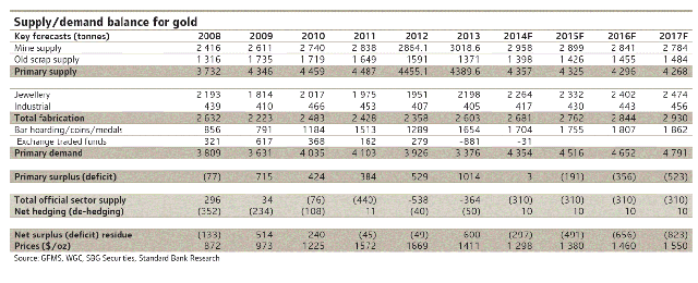 主なゴールドの需要元は2012年よりも少ないが2013年よりはまし。