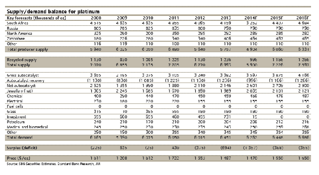 今年のプラチナの需給は南アストライキのため1mozs (約31.1トン)もの供給不足を予想しています。宝飾需要が少々減少してもあまり価格には影響はないかもしれませんが、宝飾需要は、未だに供給が多いメタルの需給のなかでのスイングデマンド的な存在であり、もし宝飾需要が弱ければプラチナの上昇は限られるでしょう。