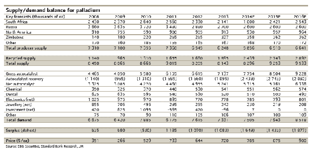 スタンダードバンク相場予想 「PGM」2014-06-27(第3四半期)