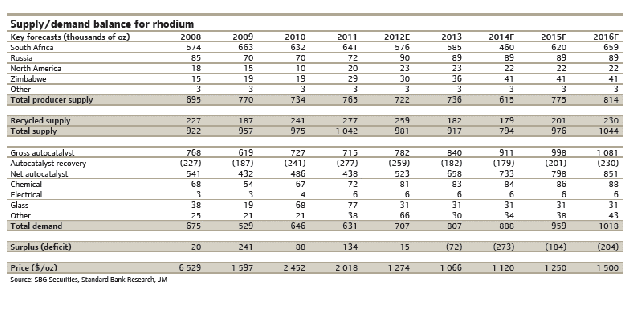 今回はPGMです。 中期的な相場は中立的から若干の弱含みを予想。950k toz (約30トン)のプラチナと530k toz(約16.5トン)のパラジウム、そして125k toz (約3.9トン)のロジウムが南アのストライキによって生産されなかったにもかかわらず、です。ストライキが終わってからの整理を考えるとあと2-3ヶ月はまだ生産されない状況が続くので、生産ロスはまだ増えます。