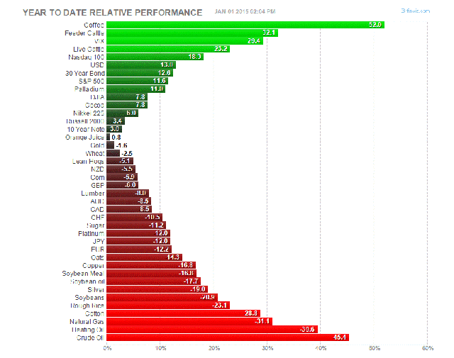 2014年はコモディティ全体にとっては散々な一年であったと言えます。原油をはじめとしたエネルギー相場は、ほぼ壊滅と言っていいほどの暴落、シルバーや銅と言った素材メタルも大きく下げ、新興国需要が大きく伸びたコーヒーを例外とすれば買われたのは、株、ドルそして債券でした。米国の金融緩和の終了と経済正常化の歩みにより、ドル、そして株への資金集中傾向は今年2015年も続きそうです。これはやはりゴールドをはじめとする貴金属にとってはネガティブな環境と言えるでしょう。多くの金融機関がゴールドに対して弱気な見方を続けています。米国の金利の最終的な上昇はやはり来たるべきものとして見ているからです。ただしドル建てのゴールドはこれだけによって下落するとは私は思いません。もしそうであれば昨年とっくに1000ドル近く、もしくは1000ドル割れまで下がっていてもおかしくないと思うからです。下がってからの粘り腰といったものをゴールドの相場に感じているのは僕だけではないでしょう。1150ドル(瞬間的には1130ドル台)まで下げても不思議とそれ以上は下げず、逆にそこからは1200ドルの近くもしくはそれ以上にまで、ドルの動きとは関係なく上がってくるマーケットだと感じませんか?特に昨年11月以降、ある程度の下値ではドルの動きとゴールドの動きが乖離してくるようになっています。これは値ごろ感からの実需の買いがゴールドのこれ以上の下落を阻んでいるのであると考えられます。そしてもうひとつ、今年注目すべき要因としてギリシャを中心とした欧州の情勢、ロシア、そして中国を取り巻く国際情勢が上げられます。もしギリシャのユーロ離脱(Grexitと呼ばれているようです。= Greece + Exit)が現実となれば、ギリシャは国際金融市場では資金を調達できなくなり、通貨の大幅切り下げは必至。そしてそれはおそらくキプロス、スペイン、イタリアといった南欧諸国に危機を広げ、ギリシャ離脱が悪しき前例となりユーロ圏自体の分裂となる恐れがあります。このような情勢下ではゴールドがsafe havenとして脚光を浴びる可能性は大きいといえるでしょう。(VIX (Volatility Index : 恐怖指数)は上昇してきています。)