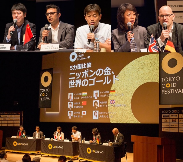 ここでようやく僕も壇上へ。中国:陳満咲杜氏、インド:スニル・クルカルニ氏、イギリス:ホワイトハウス佐藤敦子氏、ドイツ:リュディガー・ボーン氏という面々と各国におけるゴールドの位置づけ、一般の人々にとってのゴールドについて話をしてもらいました。