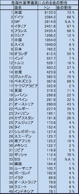 2009年から現在に至るまでの中国のゴールド生産量と輸入量、そして国内での宝飾品需要を勘案したバランスを中央銀行の買いと単純に考えると、おそらく3000トン以上に増えているという見方が支配的でしたが、今回の発表はその予想を大きく下回るものでした。この数字が真実なのかどうかは中国政府のみが知るものですが、マーケットはおそらく誰もこれが本当の数字だとは信じていないのではないかと思われます。1658トンというと、米国、ドイツ、イタリア、フランスに次ぐ世界で5番目のゴールド保有量になります。しかしその経済規模を考えると少なくともドイツの3400トン近くの量を持っていてもおかしくないはずです。
