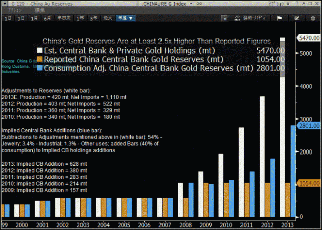 実際にゴールドが中央銀行から民間に流れているかどうかは別として、今回の600トン増の話が出る前に、中国のゴールド準備高は少なく見積もっても2800トン。個人の保有分は5500トンという見積もりもありました。