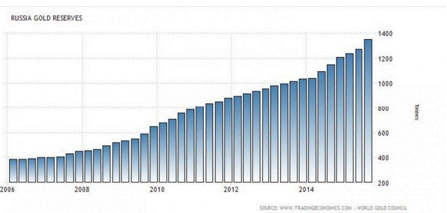 原油の最大の輸出国であり、原油安がロシア経済に打撃を与え、ルーブルの価値は大きく下げました。ロシアに対する信用不安を一掃、というわけにもいきませんが、ある程度ルーブルに信用を持たせるためにも、より多くのゴールド準備が必要という切羽詰った状態にありました。しかし、今年に入り、原油が戻し、ゴールドも急上昇したことによって、ロシアの「ゴールドヘッジ」策は見事にその役割を果たしたと言っていいでしょう。まるでこういう自体が来るのが分かっていたかのように、ずっとゴールドを買い続けていたロシア、プーチン政権はさすがだとしか言い様がありません。もしゴールドのロング積み上げがなければ、ロシアルーブルはもっと壊滅的な状態になり、ひいてはロシア経済もどうなっていたかわからないような危機に瀕していたでしょう。最終的にはもちろん原油の価格の影響が最も大きいはずですが、少なくともゴールドはその危機をヘッジするのにその役割を十分に果たしたと言えるでしょう。まさにこれがゴールドの役割。個人の財産だけでなく国の経済をも救うものであると言えるのではないでしょうか。