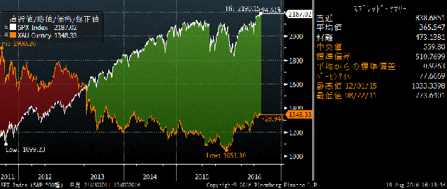 今週はゴールドと株価の相関(逆相関)の関係を見てみましょう。