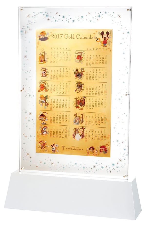 今回発売する「ディズニー クリスタルシーズン 純金ビッグカレンダー 2017」は、「ディズニー クリスタルシーズン」のモチーフをGINZA TANAKAの高度な貴金属加工技術で純金上に表現しました。