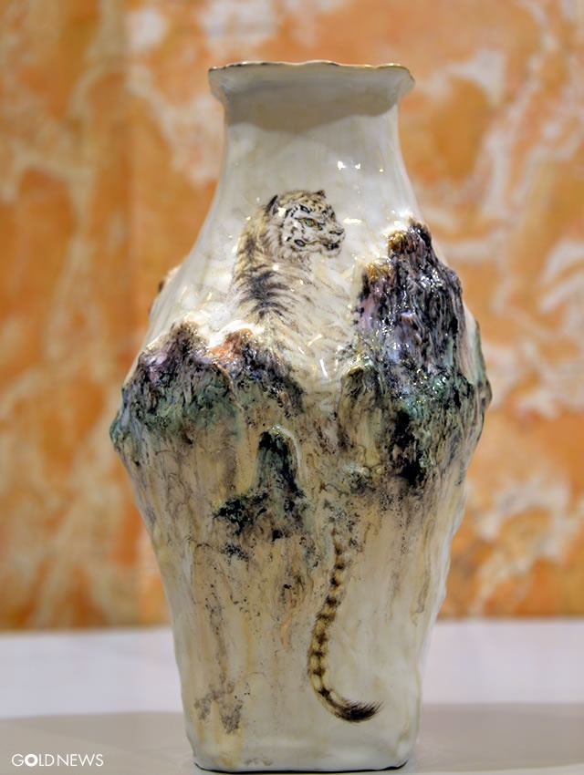 日本橋三越本店6階アートスクエアでは、2014年4月30日から5月6日の期間で「牟田陽日(むた・ようか)」展を開催。「新しいジャポニズム」を軸に、古今和洋織り交ぜたモチーフを取り入れた、彩り豊かな九谷磁器を展開している牟田さんの作品から大皿、花器、酒器、茶碗など、今回約80点を展示しています。すべての作品には必ずどこかに、特別な色としての”金色”が盛り込まれている、とのこと。