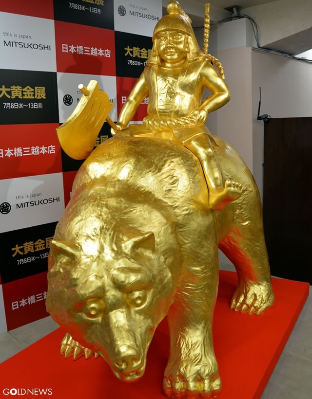 金製品の販売や貴金属の買い取り業務を行うSGC(代表・土屋豊)は、2015年7月8日(水)から7月13日(月)の期間、仏具から縁起物まで金製品約1,000点が一堂に会する展示販売会「大黄金展」を日本橋三越本店 本館7階催事場にて開催。今回の大黄金展では”相撲”をテーマに、関連製品も数多く展示、中でも高さ170cmの「黄金の金太郎」がひときわ目を惹きました。初日のトークショーの模様や展示品などを写真満載でお届け致します。