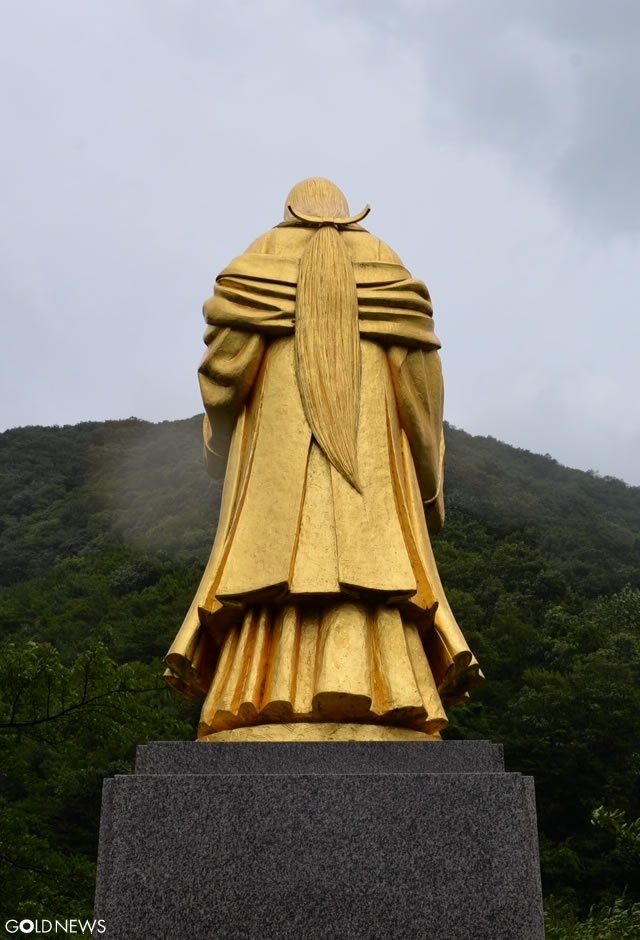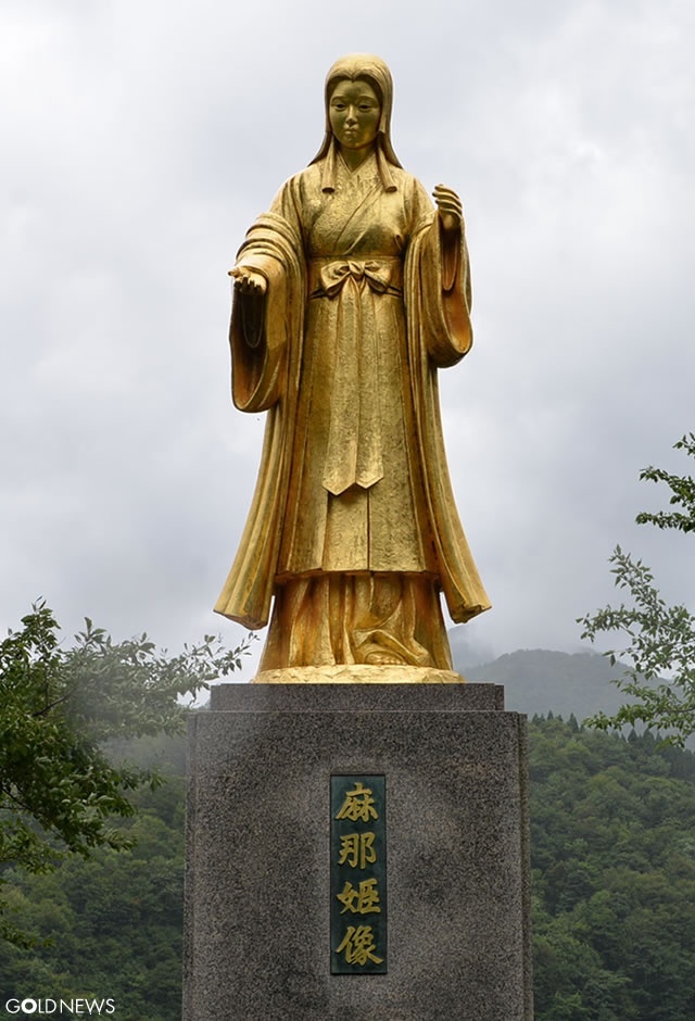 金色に輝く麻那姫像-福井県大野市・真名川ダム