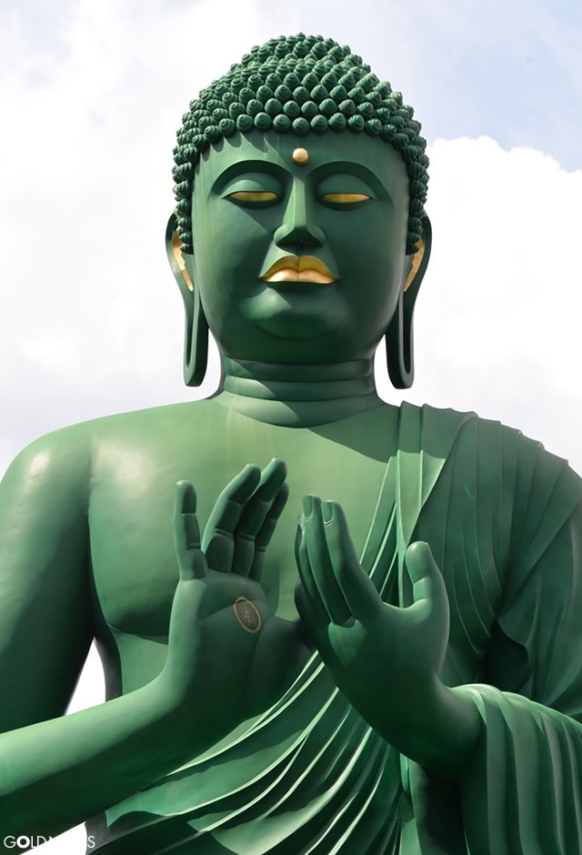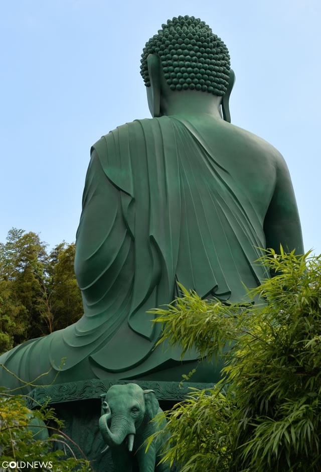 金と緑のコントラストが斬新な名古屋大仏―名古屋・桃巌寺