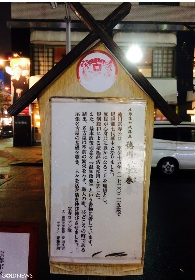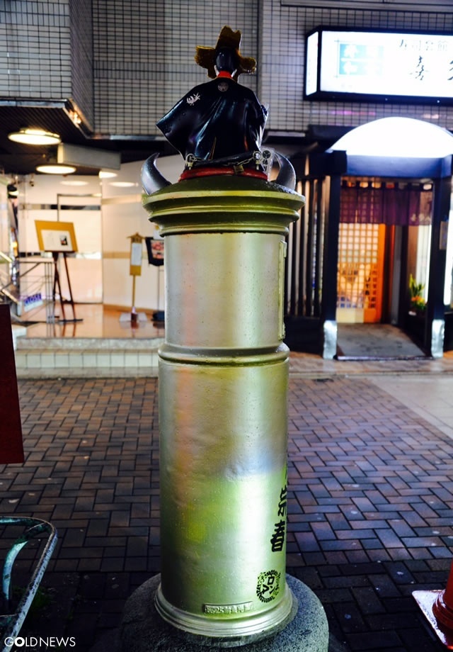 金色に輝く「開運ポスト宗春」―名古屋・栄 錦通り