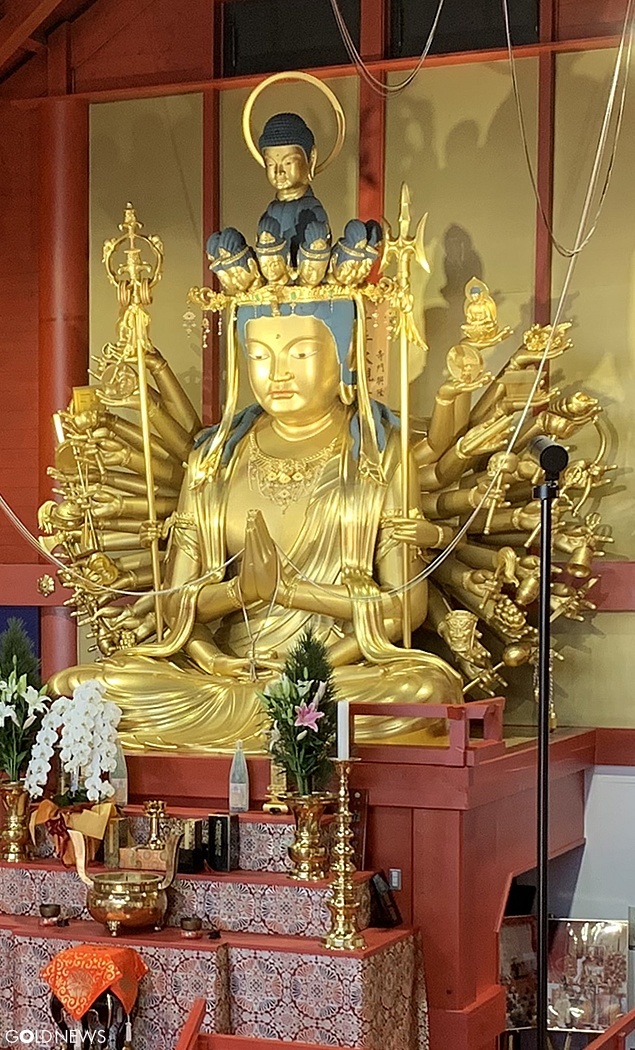 静岡県・焼津市にある「大覺寺全珠院(だいかくじぜんしゅいん)」にある、像高4.2メートル、仏頭1.8メートルの大仏様式で日本一大きな千手観音。