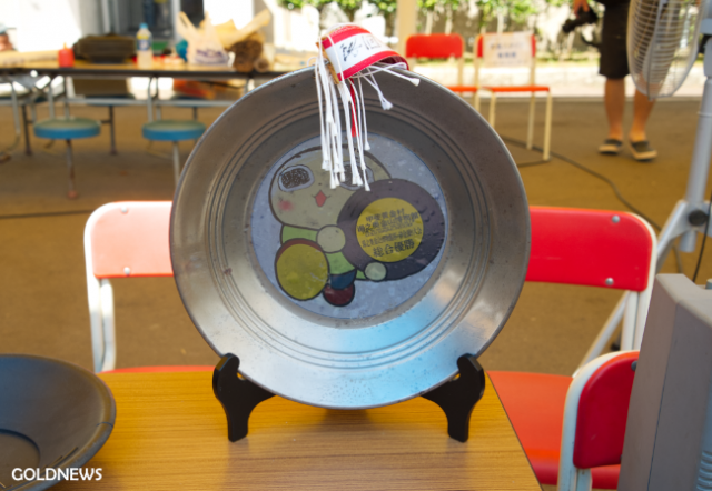 優勝者には、こちらの砂金掘り王の証である湯之奥金山博物館マスコットキャラクター「もーん父さん」が描かれた特製のパンニング皿が贈呈されます。
