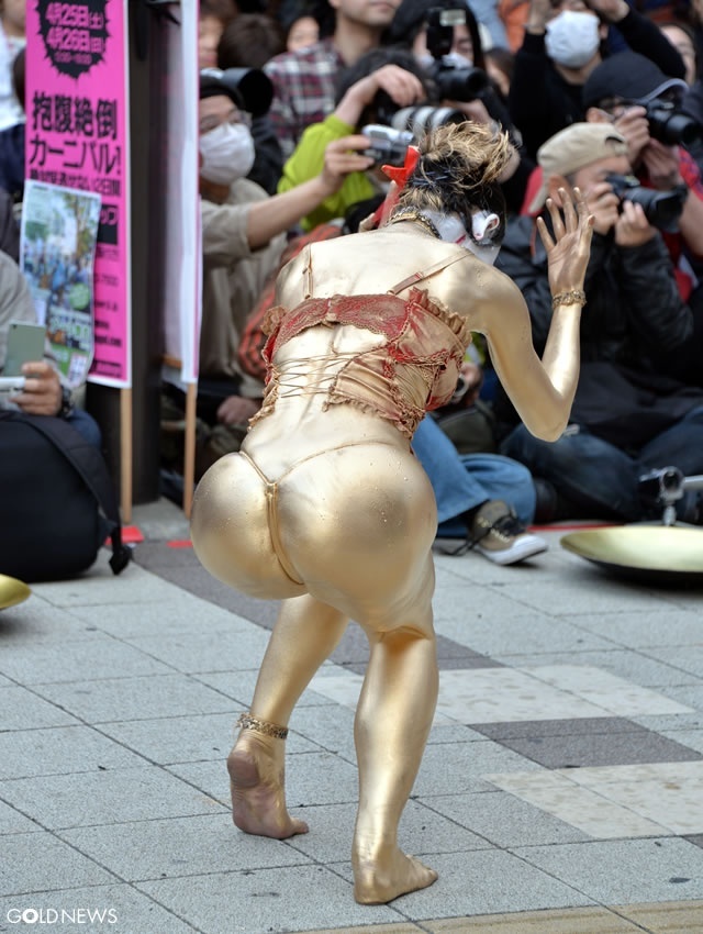 高円寺びっくり大道芸2015、金色の汗が滴るゴールデンズ「金粉ショー」!