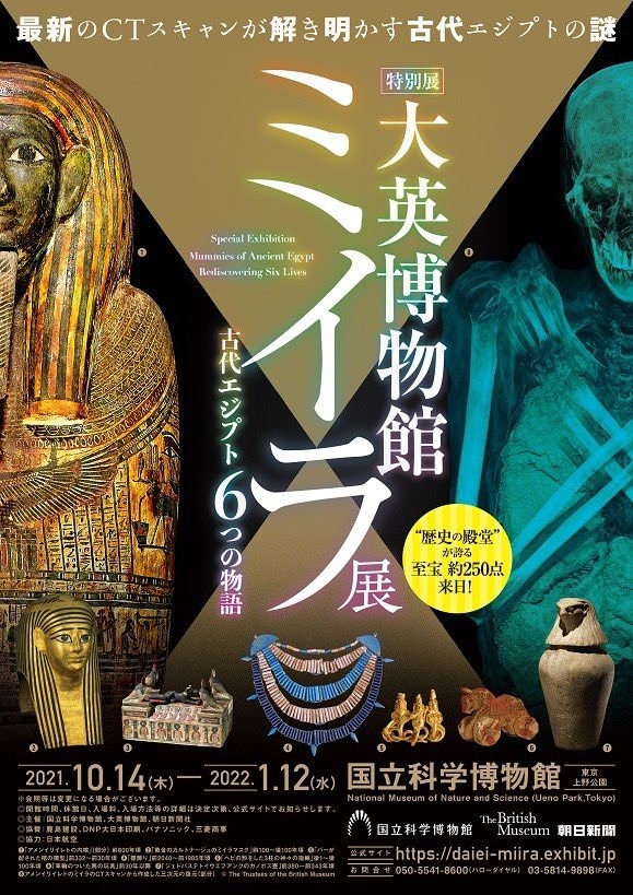 東京・上野にある国立科学博物館では、2021年10月14日(木)~2022年1月12日(水)の期間で、イギリスの大英博物館が誇る世界最大級の古代エジプト・コレクションより、6体のミイラを含む約250点の文物を紹介する特別展「大英博物館ミイラ展 古代エジプト6つの物語」を開催。