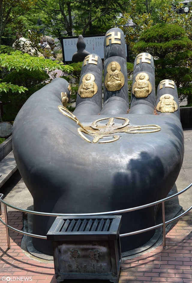 先ほどが「足」でしたので、今度は「手」。こちらは観音様の「仏手」で、仏手指紋は文筆達成や学問成就に御利益があると言われているそうです。