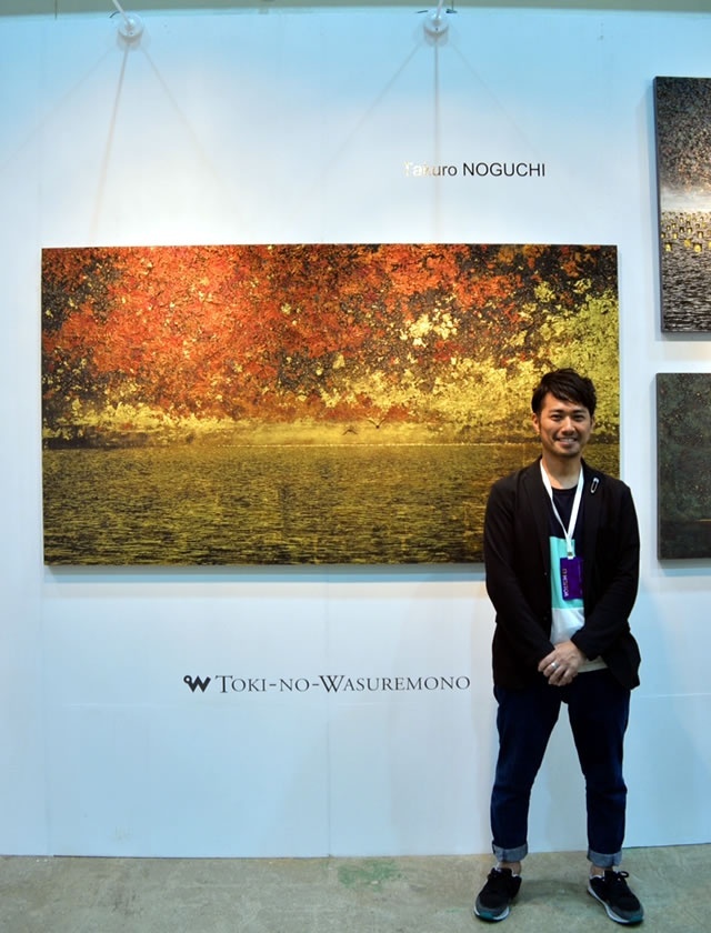 こちらが今回の旅の目的でもある野口琢郎氏の作品が展示されている青山のギャラリー「ときの忘れもの」ブース。出展作家は秋葉シスイ(絵画)、草間彌生(版画)、野口琢郎(箔画)、オノサト・トシノブ(絵画)、ナム・ジュン・パイク(絵画、版画)、瑛九(絵画)、料治幸子(ドローイング)。