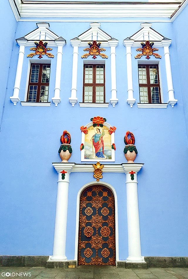 こちらは12世紀に創建されたウクライナ・バロック様式の修道院です。1936年に旧ソ連の教会弾圧により破壊されてしまいましたが、ウクライナの独立を機に再建されました。まず外観で目を引くのが、美しい水色の壁と黄金ドームとのコントラスト、そして中はモザイク画やフレスコ画に彩られた荘厳さが漂います。