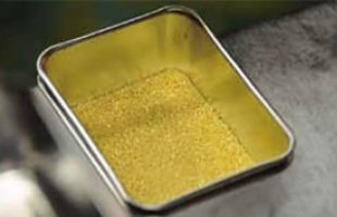 銅精鉱中に微量に含まれる金銀は、金銀スライムに濃縮されます。このスライムを処理し、金と銀に分離。スライムから分離、抽出された金はいくつかの工程を経て、純度99.99%の金粒となります。